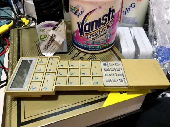 The only thing I could find in my drawers that had the bromide yellowing was my old Woz designed CL-9 Core Remote Control. It was designed by Steve Wozniak when he left Apple and started a new company. The CL-9 was the first programmable remote controller out there. Very advanced, but designed by an engineer for an engineer. I mean, buttons that use hexadecimal! Only people like me can love stuff like that. They didn’t sell too well.
