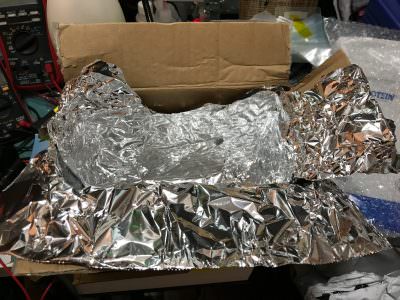 I only bought one measly UV lamp, stupid me. So I took an old box and covered the inside with aluminum foil to get more light evenly on every spot.